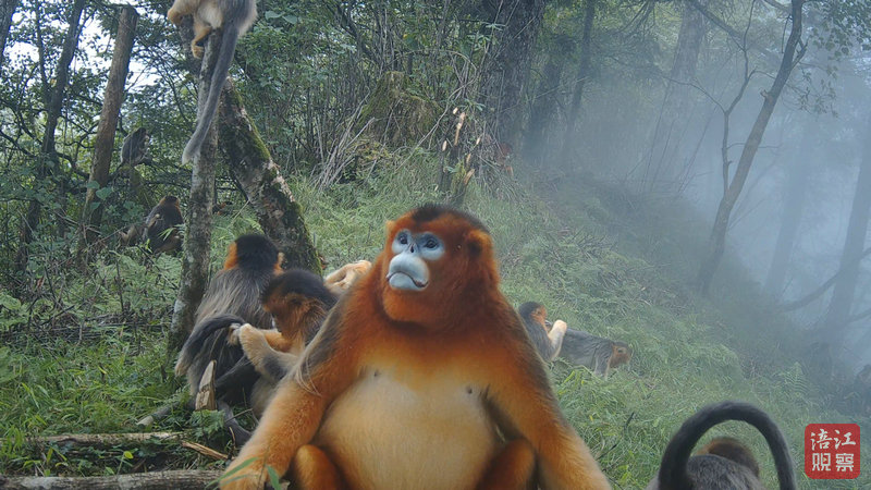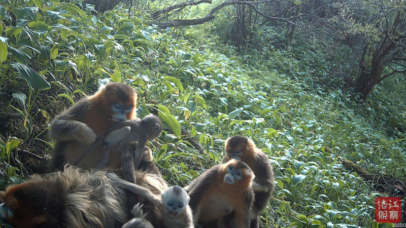 在大熊貓出現(xiàn)地方附近,川金絲猴的“日常”生活同樣鮮活。畫面中——