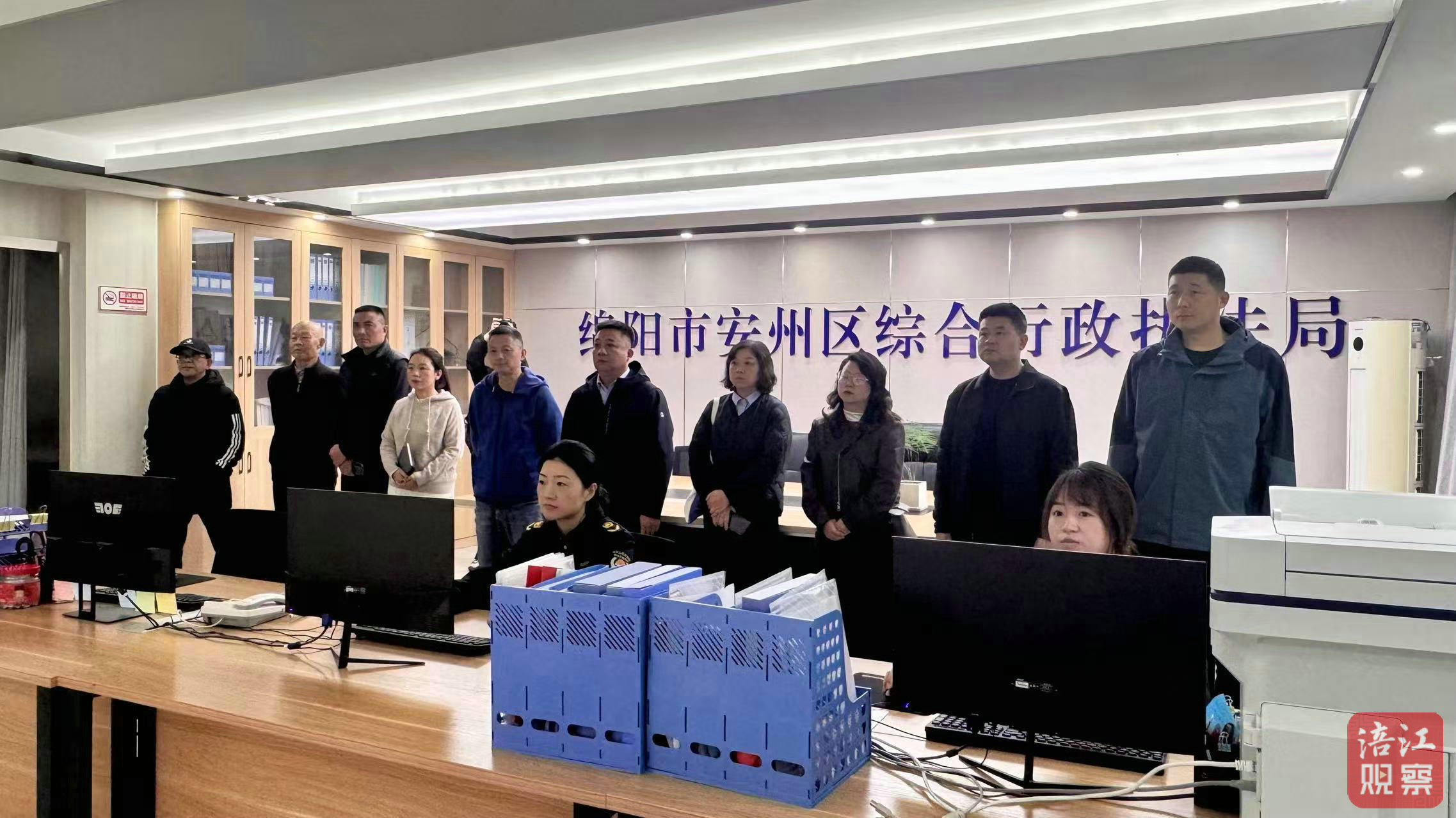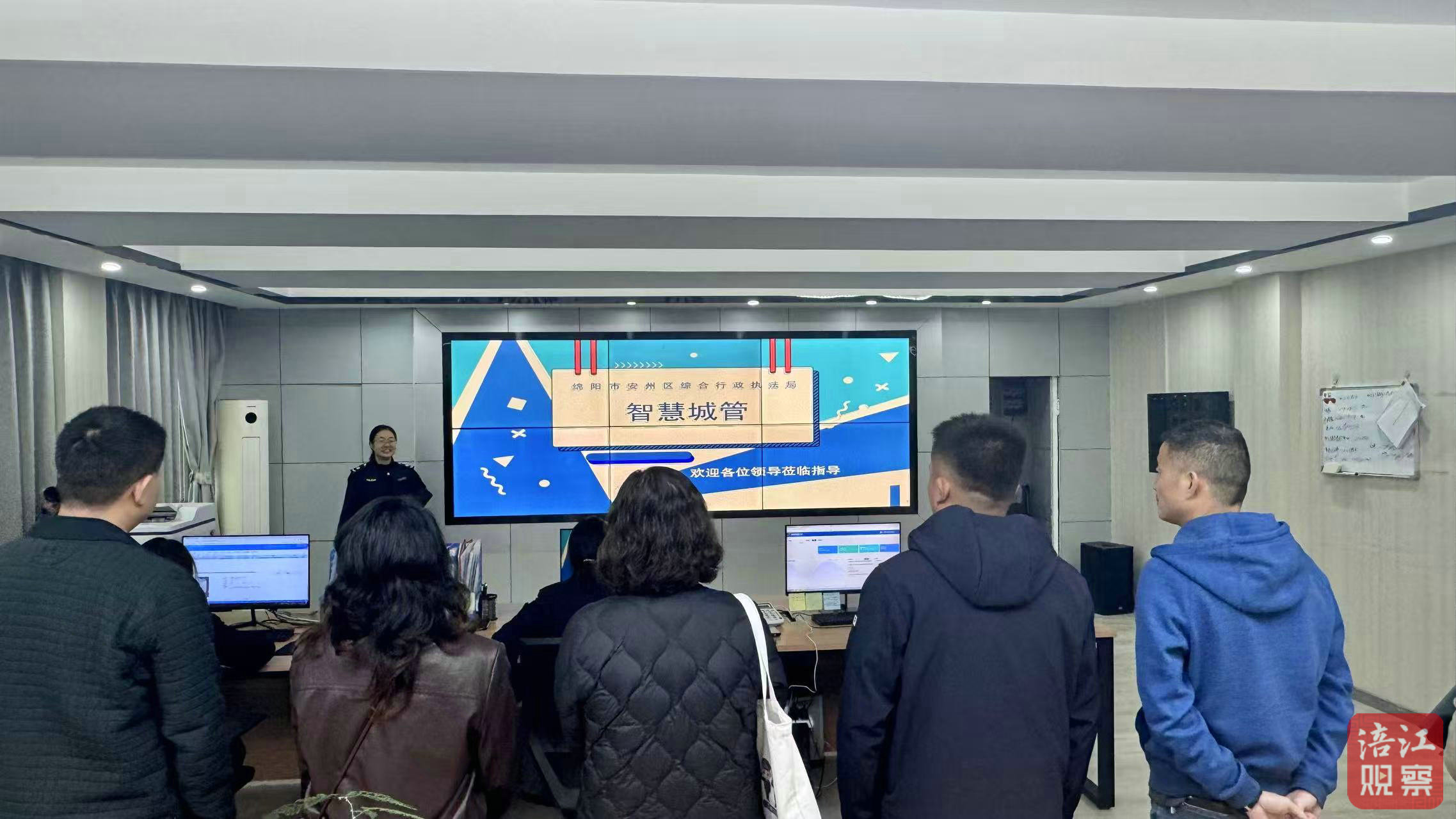 聘任儀式后,他們走進安州區(qū)綜合行政執(zhí)法局指揮大廳,實地了解了安州區(qū)智慧城管中心“采集、分析、服務(wù)、指揮、監(jiān)察”五位一體的城市管理平臺運行情況。