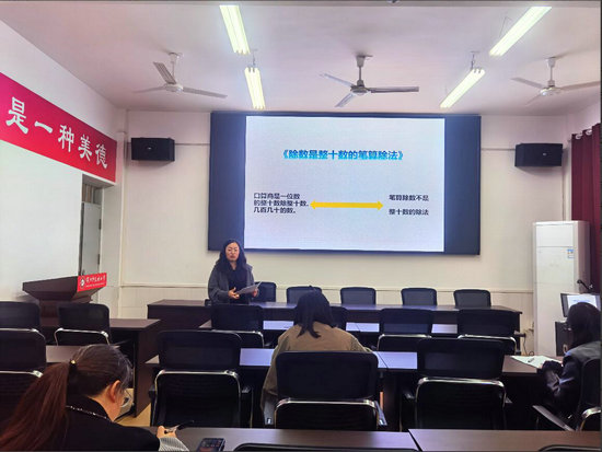 說課環(huán)節(jié)結(jié)束后,進(jìn)入集中研討與點評環(huán)節(jié)。全體教師圍繞兩節(jié)說課內(nèi)容,聚焦“算理與算法的有機(jī)融合”“幾何圖形教學(xué)中思想方法的滲透”等關(guān)鍵問題展開深入交流,在場教師均有所悟、有所獲。