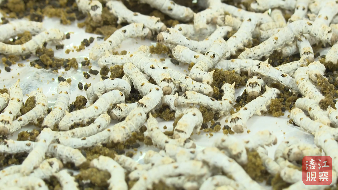 11月10日,在鹽亭縣同益新絲綢全產(chǎn)業(yè)鏈項(xiàng)目的智能化養(yǎng)蠶車間內(nèi),記者看到一條條白胖胖的蠶寶寶正在標(biāo)準(zhǔn)化蠶臺(tái)上,專注啃食著均勻鋪開的深綠色顆粒。這不是普通的顆粒,而是由桑葉精深加工制成的“復(fù)合營(yíng)養(yǎng)餐”。