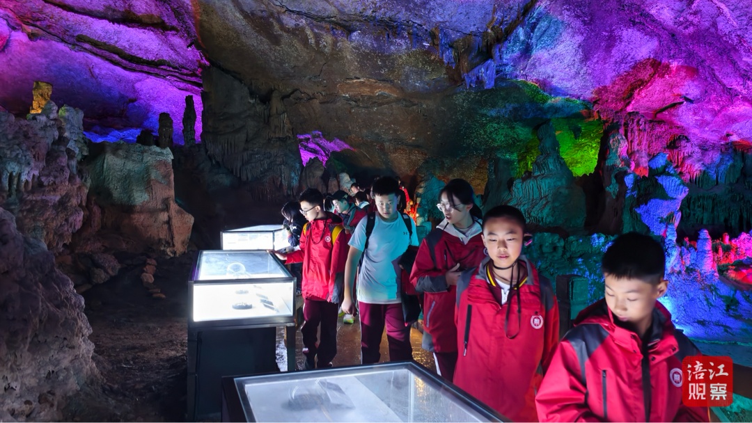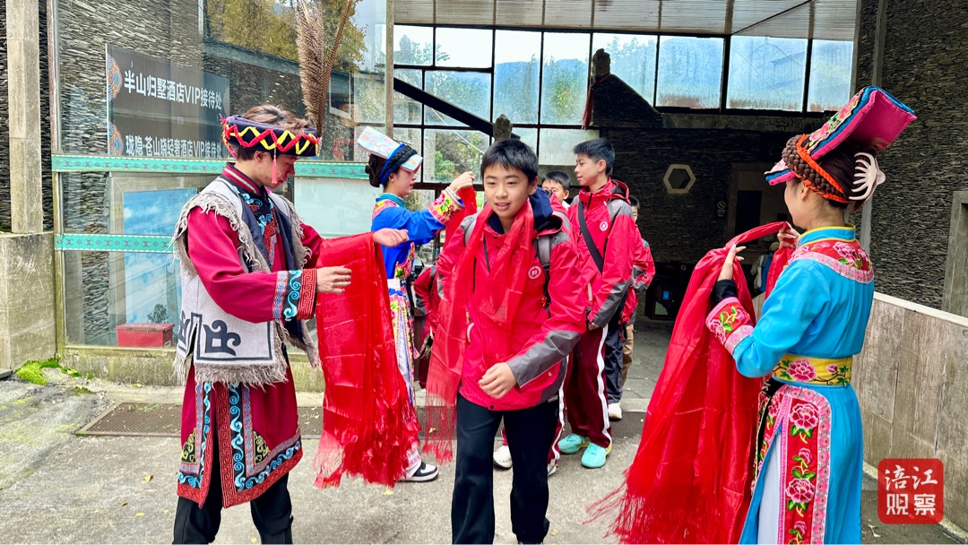 在系列研學(xué)課程中,學(xué)生們通過“指尖羌韻”了解羌族紋飾、學(xué)用羌語,并親手制作羌風(fēng)冰箱貼;“英雄禮贊:大禹”課程生動講述大禹治水歷史,激發(fā)對先賢的敬仰之情;猿王洞內(nèi),大家則化身“地質(zhì)探險家”,實(shí)地感受喀斯特地貌的天然奇觀。此外,盤勾技藝實(shí)踐與羌族歌舞展演等環(huán)節(jié),也讓學(xué)生沉浸式體驗(yàn)非遺文化的魅力。