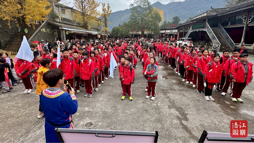 12日上午10時,景區(qū)入口處已人頭攢動,散客與研學(xué)團(tuán)隊(duì)共同構(gòu)成一幅熱鬧的秋假出游畫卷。中午時分,來自成都市武侯區(qū)領(lǐng)川外國語學(xué)校的380名學(xué)生統(tǒng)一著裝,抵達(dá)景區(qū)開展以“探秘羌寨古韻·傳承非遺文脈”為主題的秋季研學(xué)實(shí)踐。