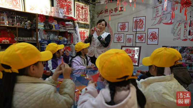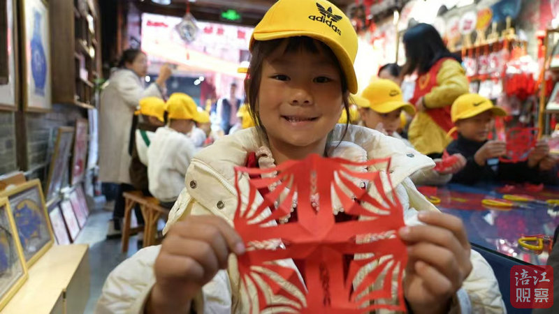 30名小學生來到三臺縣潼川古城非遺剪紙工坊。在老師的悉心指導下,一雙雙稚嫩的小手執(zhí)起剪刀,專注地剪裁著手中的紅紙。