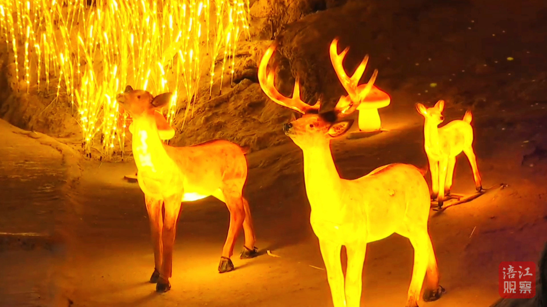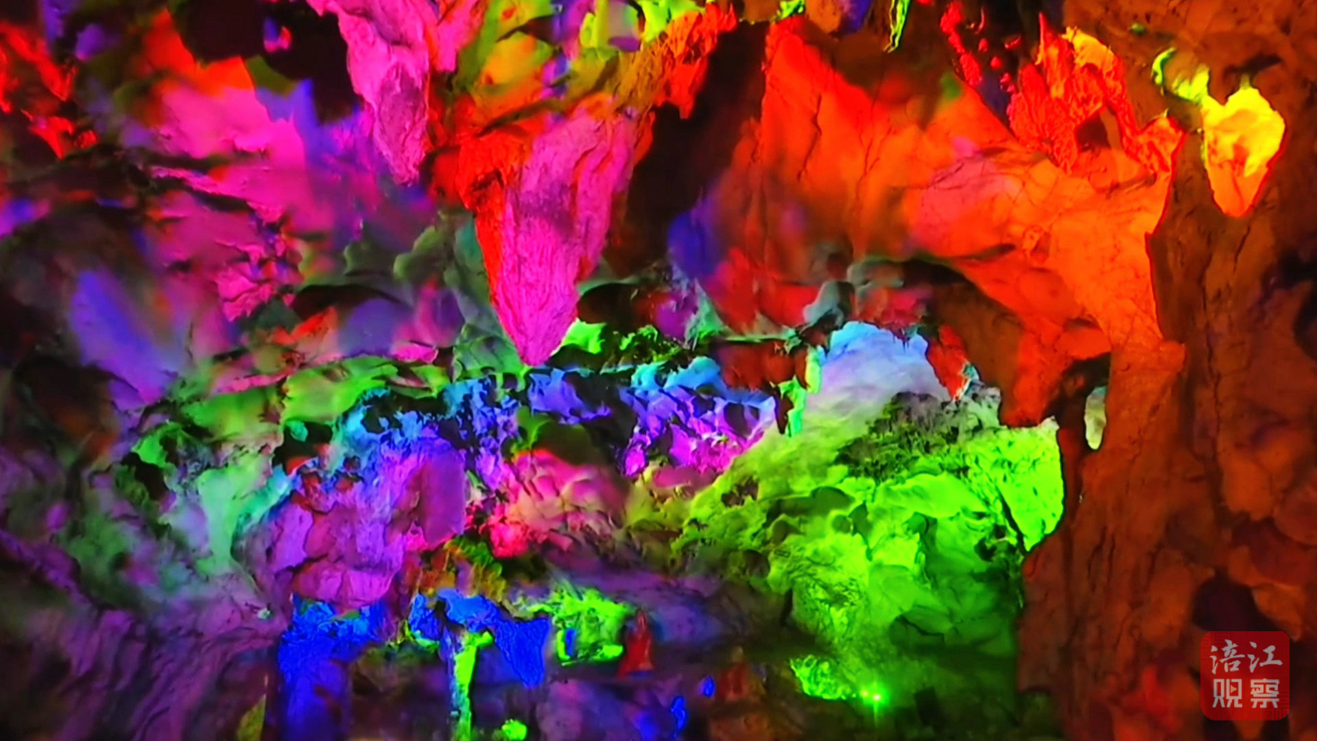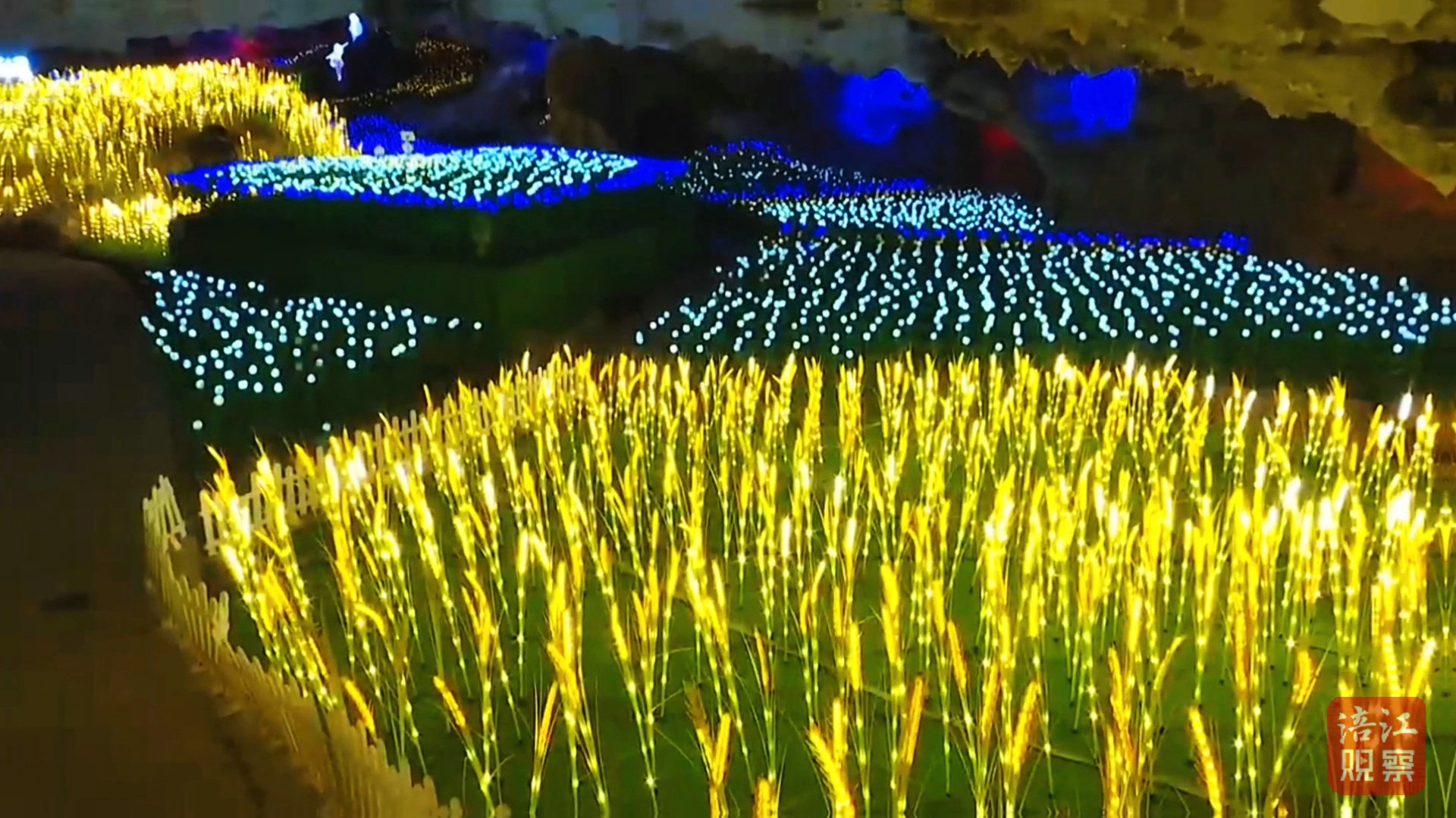 在佛爺洞景區(qū),全新升級(jí)的幻彩燈光秀吸引游客紛至沓來。
