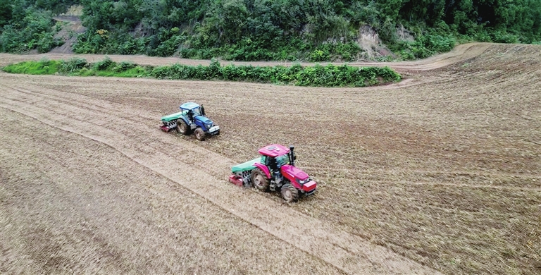 在科技的加持下,北斗導(dǎo)航技術(shù)如同一把“金鑰匙”,打開(kāi)了坡地冬小麥高效、優(yōu)質(zhì)播種的新模式。目前,鹽亭縣已播種冬小麥10萬(wàn)畝,預(yù)計(jì)11月底將全面完成23萬(wàn)畝播種任務(wù)。