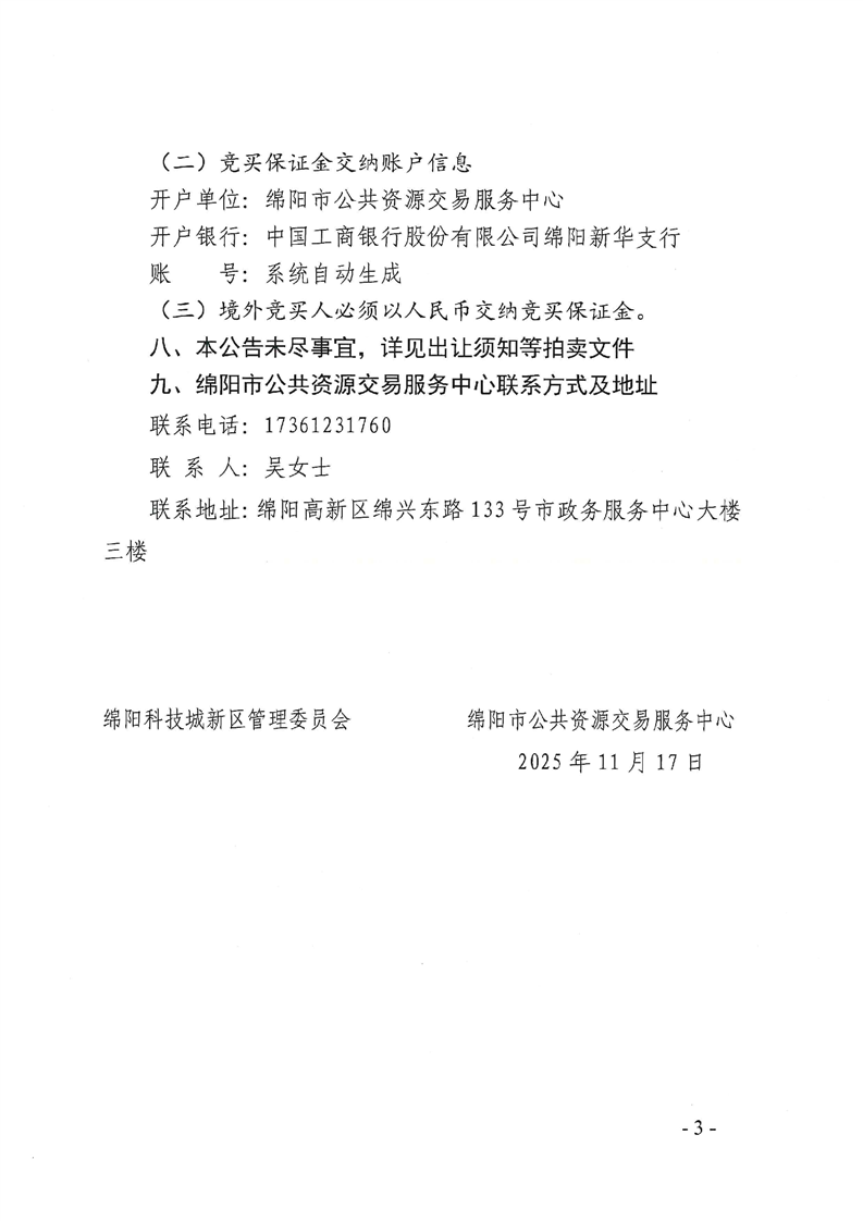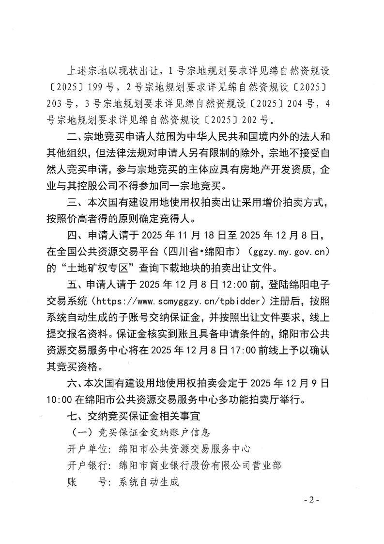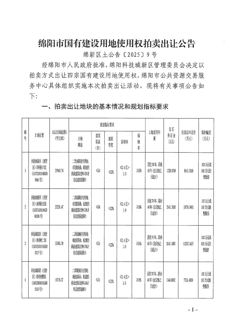 綿陽(yáng)市國(guó)有建設(shè)用地使用權(quán)拍賣出讓公告(綿新區(qū)土公告〔2025〕9號(hào))