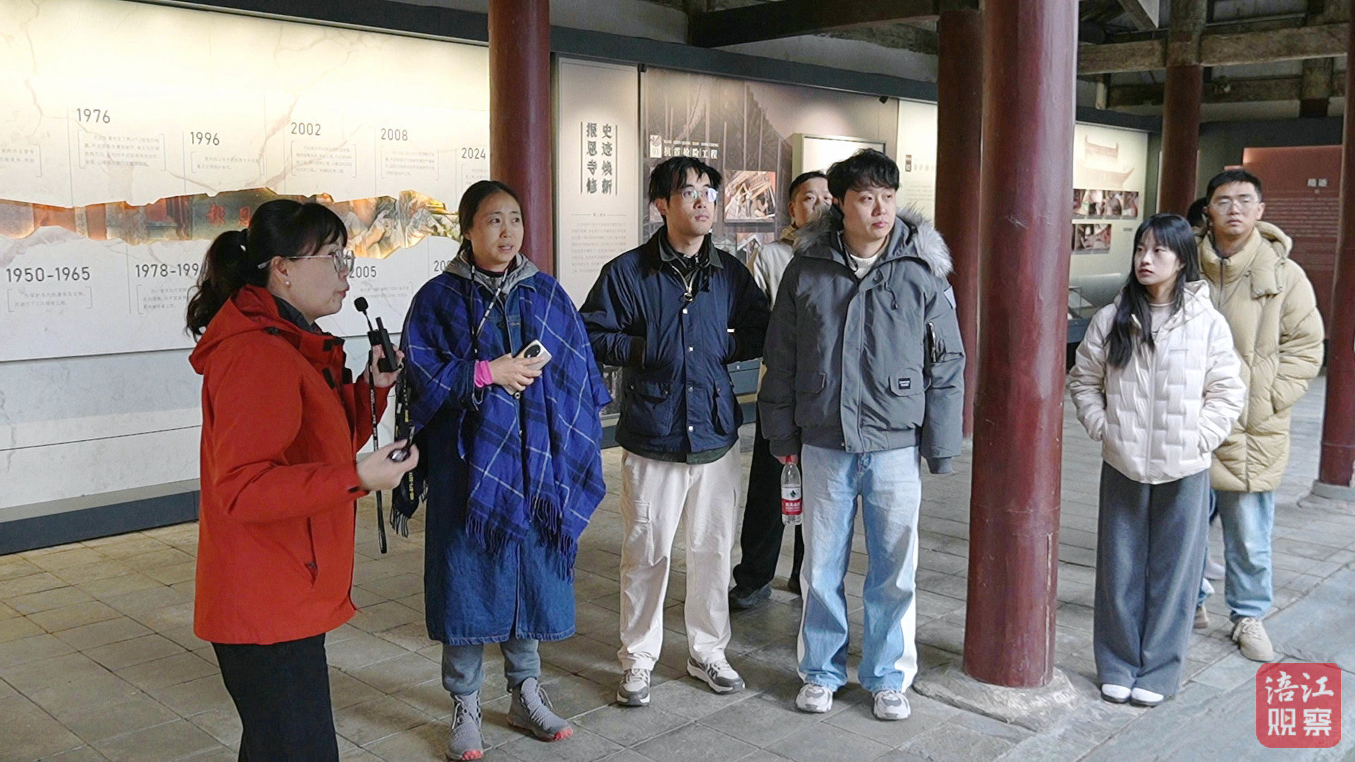 媒體記者們的鏡頭追隨著彩繪壁畫的細膩筆觸、轉輪經藏的古樸紋路緩緩移動,筆端記錄著千手觀音的莊嚴神態(tài)與斗拱的精巧構造,不時向講解人員詢問古建筑保護細節(jié)與文旅融合路徑,在飛檐風鈴的清響中,探尋這座大明遺珠的過往與新生。