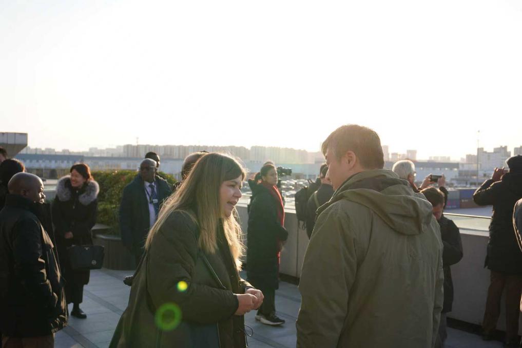 11月17日,駐華外交官在中歐班列西安集結(jié)中心參觀交流。(趙瀚澤 攝)