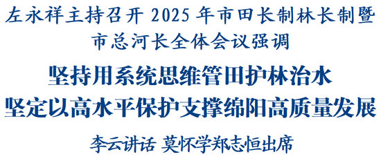 綿陽新聞網(wǎng)訊 11月20日,2025年市田長制林長制暨市總河長全體會議召開,省委常委、市委書記左永祥主持會議并講話。他強調(diào),要深入學習貫徹習近平生態(tài)文明思想和習近平總書記對四川工作系列重要指示精神,全面落實黨中央、國務院和省委、省政府決策部署,堅持用系統(tǒng)思維管田、護林、治水,推動田長制、林長制、河湖長制走深走實,堅定以高水平保護支撐綿陽高質(zhì)量發(fā)展。