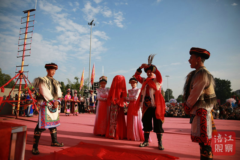 隨著羌繡省級(jí)代表性傳承人陳云珍等火把手點(diǎn)燃火把,木柴在篝火中噼啪作響,沙朗篝火聯(lián)歡活動(dòng)正式開(kāi)始。兩條80米長(zhǎng)的巨型羌紅在人群中逶迤蜿蜒,游客在篝火的映照下,與當(dāng)?shù)厝罕娛掷?,圍著篝火唱起了歌、跳起了舞,盡情釋放著內(nèi)心的歡樂(lè)與熱情,一幅民族團(tuán)結(jié)進(jìn)步的生動(dòng)畫卷徐徐展開(kāi)。