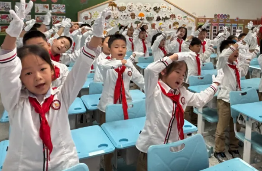 比賽現(xiàn)場(chǎng),小小的身影挺直脊梁,稚嫩的臉龐滿是認(rèn)真。《國(guó)旗國(guó)旗真美麗》的旋律響起時(shí),孩子們揮動(dòng)著手中的小紅旗,眼神里閃爍著星光;《紅星閃閃》的歡快節(jié)奏中,他們跟著節(jié)拍輕輕搖擺,把愛(ài)國(guó)的種子悄悄播撒;《我愛(ài)北京天安門(mén)》前奏剛起,臺(tái)下便響起輕聲跟唱,童聲與掌聲交織,成了校園里最動(dòng)人的樂(lè)章。