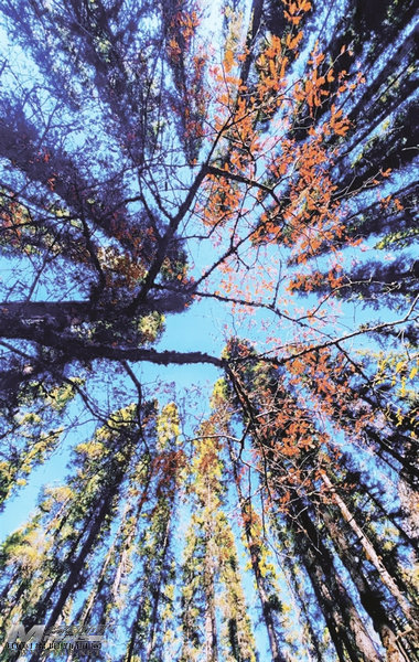 平武天母湖畔的彩林像天然調(diào)色盤(pán)?! ∮浾?任露瀟 攝