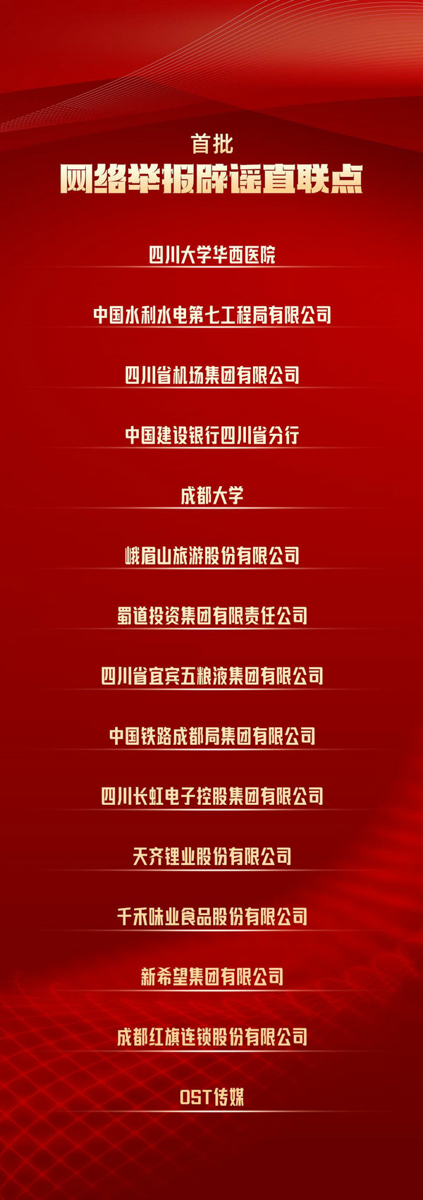 近日,第六屆四川互聯(lián)網(wǎng)辟謠優(yōu)秀作品征集活動(dòng)頒獎(jiǎng)儀式在自貢圓滿落幕?;顒?dòng)現(xiàn)場(chǎng),第二批網(wǎng)絡(luò)舉報(bào)辟謠直聯(lián)點(diǎn)正式公布。據(jù)悉,今年9月,2025年四川省網(wǎng)絡(luò)普法天府行暨網(wǎng)絡(luò)舉報(bào)辟謠宣傳周活動(dòng)上公布了首批“網(wǎng)絡(luò)舉報(bào)辟謠直聯(lián)點(diǎn)”名單。目前四川已設(shè)立蜀道集團(tuán)、新希望集團(tuán)、四川航空集團(tuán)有限責(zé)任公司等25個(gè)直聯(lián)點(diǎn),將舉報(bào)觸角延伸至實(shí)體點(diǎn)位,推動(dòng)網(wǎng)絡(luò)舉報(bào)辟謠從“被動(dòng)回應(yīng)”到“主動(dòng)預(yù)防”、從“單打獨(dú)斗”到“協(xié)同治理”的雙重轉(zhuǎn)變,逐步構(gòu)建起網(wǎng)絡(luò)生態(tài)治理“一張網(wǎng)”工作格局,為營(yíng)造清朗網(wǎng)絡(luò)環(huán)境提供有力支撐。