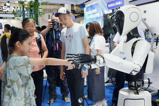 2025世界機(jī)器人大會(huì)上,“四川造”機(jī)器人產(chǎn)品和市民互動(dòng)。(受訪者供圖)