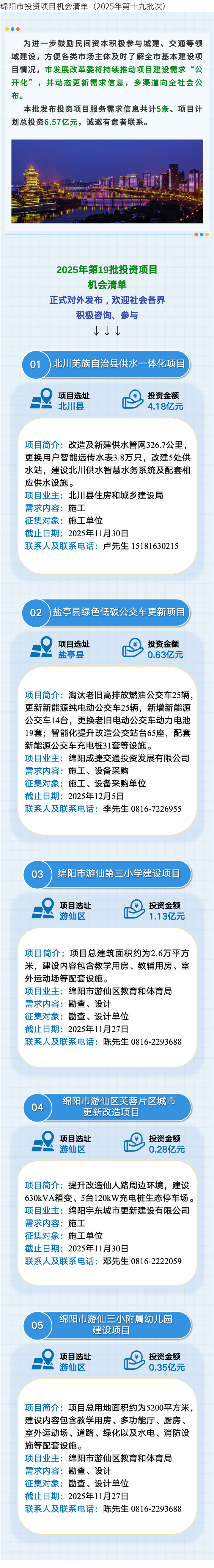 綿陽(yáng)市投資項(xiàng)目機(jī)會(huì)清單(2025年第十九批次)