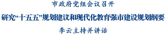 綿陽新聞網(wǎng)訊 11月24日,市政府黨組會(huì)議召開,研究“十五五”規(guī)劃建議和現(xiàn)代化教育強(qiáng)市建設(shè)規(guī)劃綱要。市委副書記、市政府黨組書記、市長(zhǎng)李云主持會(huì)議并講話。