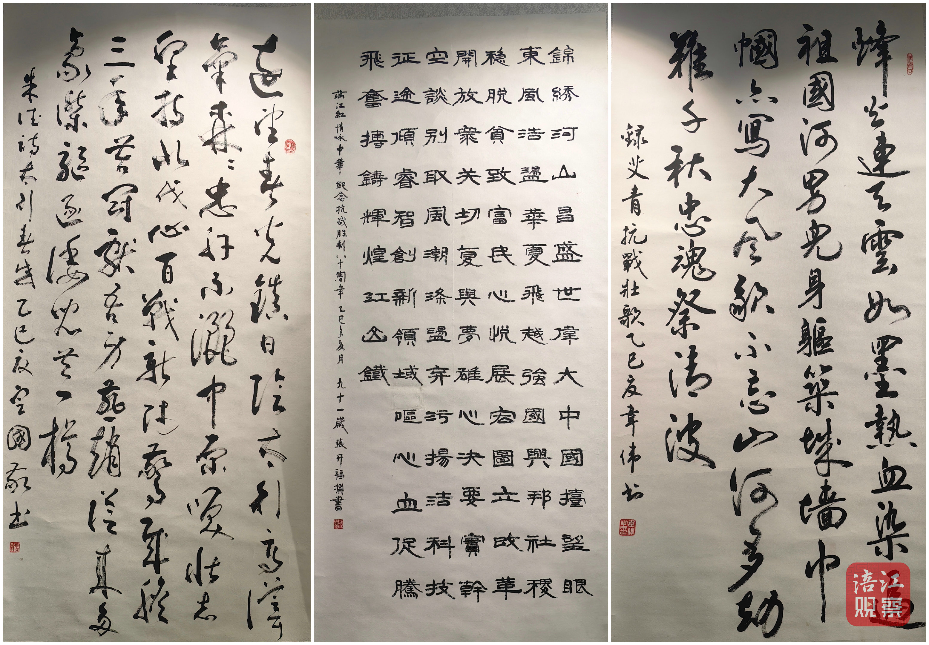 綿陽市老年書畫研究會常務(wù)副會長介紹,這次展覽的作品都以“紀念中國人民抗日戰(zhàn)爭暨世界反法西斯戰(zhàn)爭勝利80周年”為主題創(chuàng)作而成,作品中的每一筆線條都凝結(jié)著對家國的摯愛,每一片色彩都寄托著對和平的珍視,不僅展現(xiàn)了老同志們的藝術(shù)修養(yǎng),更彰顯出他們深沉熾熱的赤子情懷。