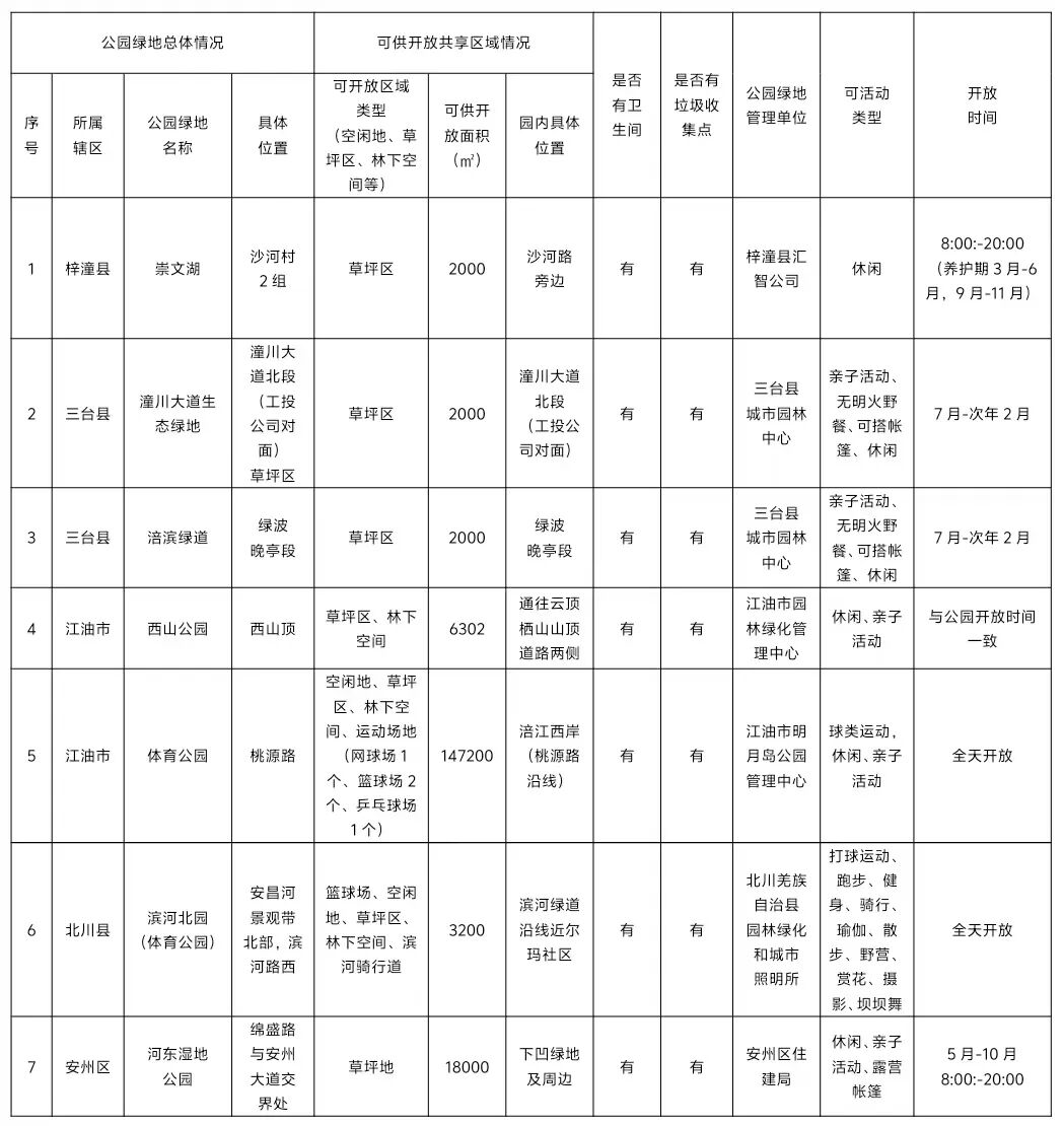 據(jù)了解,2024年9月,綿陽開放首批14處共享草坪,面積約14.26公頃(14.26萬平方米);2025年8月,第二批8處共享綠地開放,面積共計超過3.4公頃(3.4萬平方米),除草溪河生態(tài)綠地外,其他均位于公園或口袋公園里。