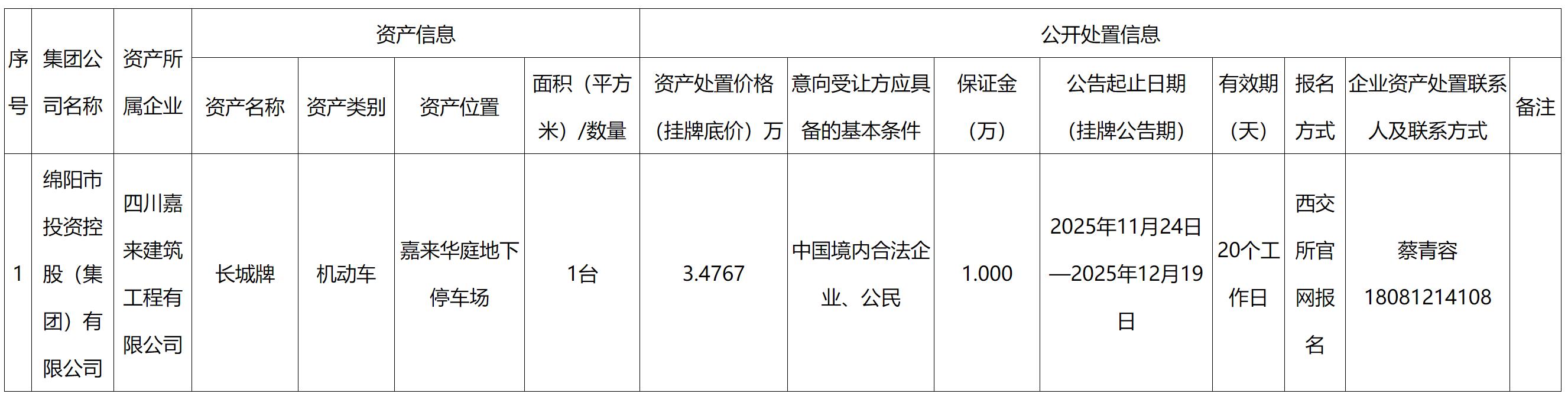 四川嘉來(lái)建筑工程有限公司資產(chǎn)處置公告