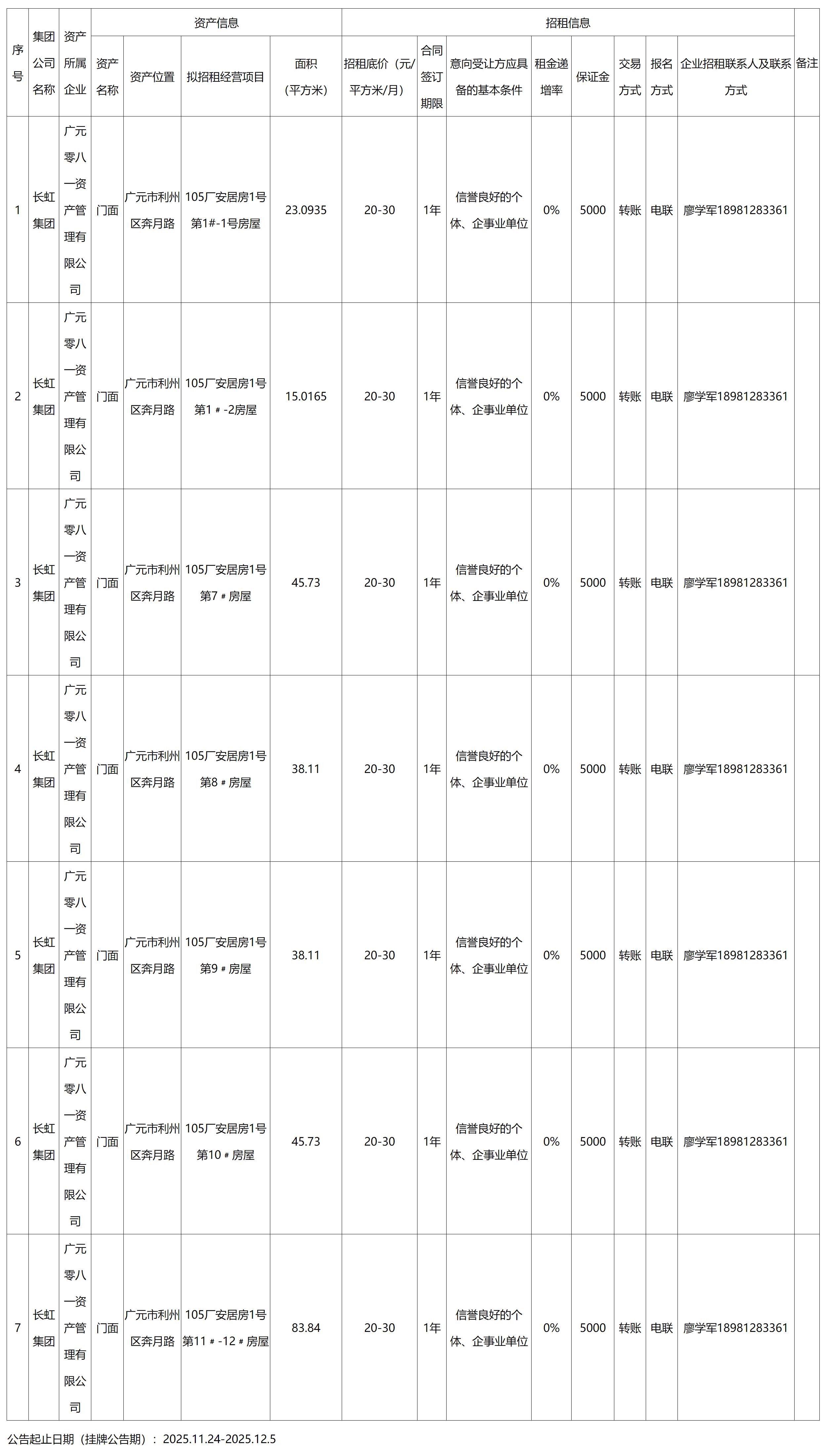 廣元零八一資產(chǎn)管理有限公司資產(chǎn)出租公告