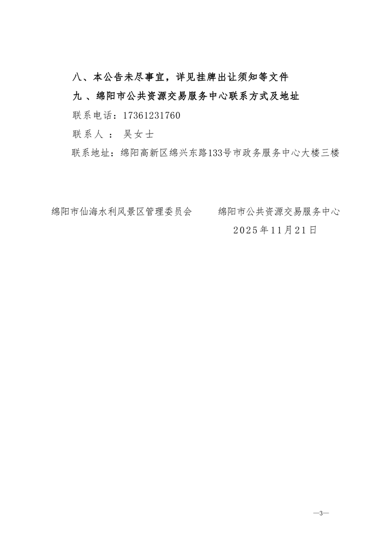 綿陽市國有建設用地使用權掛牌出讓公告(綿仙管委〔2025號〕17號)
