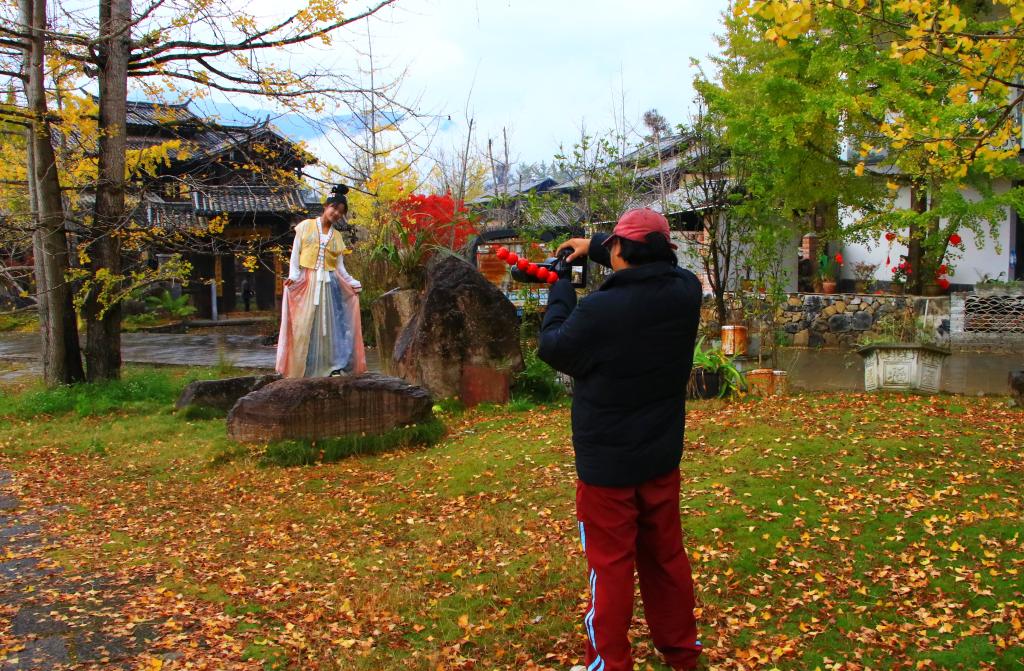 相比于傳統(tǒng)的看山看水,江東村拉滿了游客的“情緒價(jià)值”:可以打卡“村咖”,由銀杏葉點(diǎn)綴,品一杯醇厚又地道的保山小??Х?搭一頂帳篷,和親朋好友圍坐一起,野餐露營(yíng);還可以穿著新中式漢服,或者特色民族服飾,沉浸式體驗(yàn)銀杏文化的獨(dú)特韻味。
