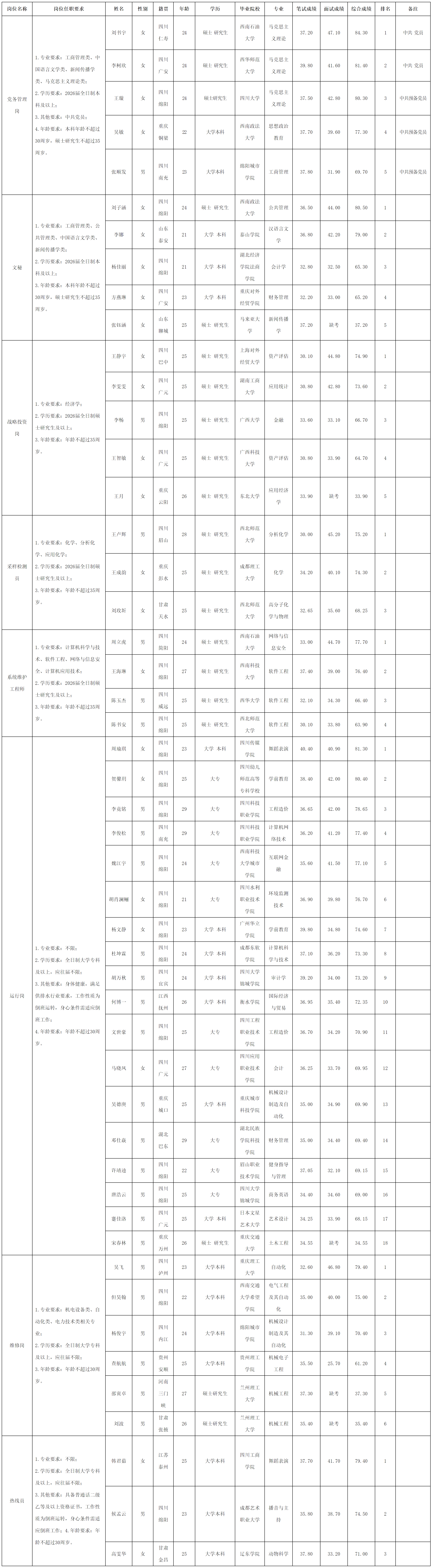 根據(jù)綿陽市水務(集團)有限公司發(fā)布的招聘公告及招聘相關規(guī)定,經(jīng)筆試、面試等程序,現(xiàn)將筆試(面試)成績予以公示。
