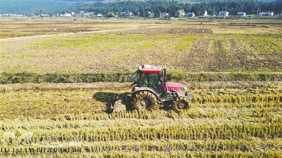 仙鶴鎮(zhèn)石龍村冬小麥播種現(xiàn)場(chǎng)。記者 周鈺 攝