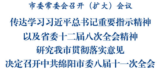 會議決定,今年12月上旬召開中共綿陽市委八屆十一次全會,深入貫徹黨的二十屆四中全會精神,認真落實省委十二屆八次全會精神,研究關(guān)于制定綿陽市國民經(jīng)濟和社會發(fā)展第十五個五年規(guī)劃的建議。
