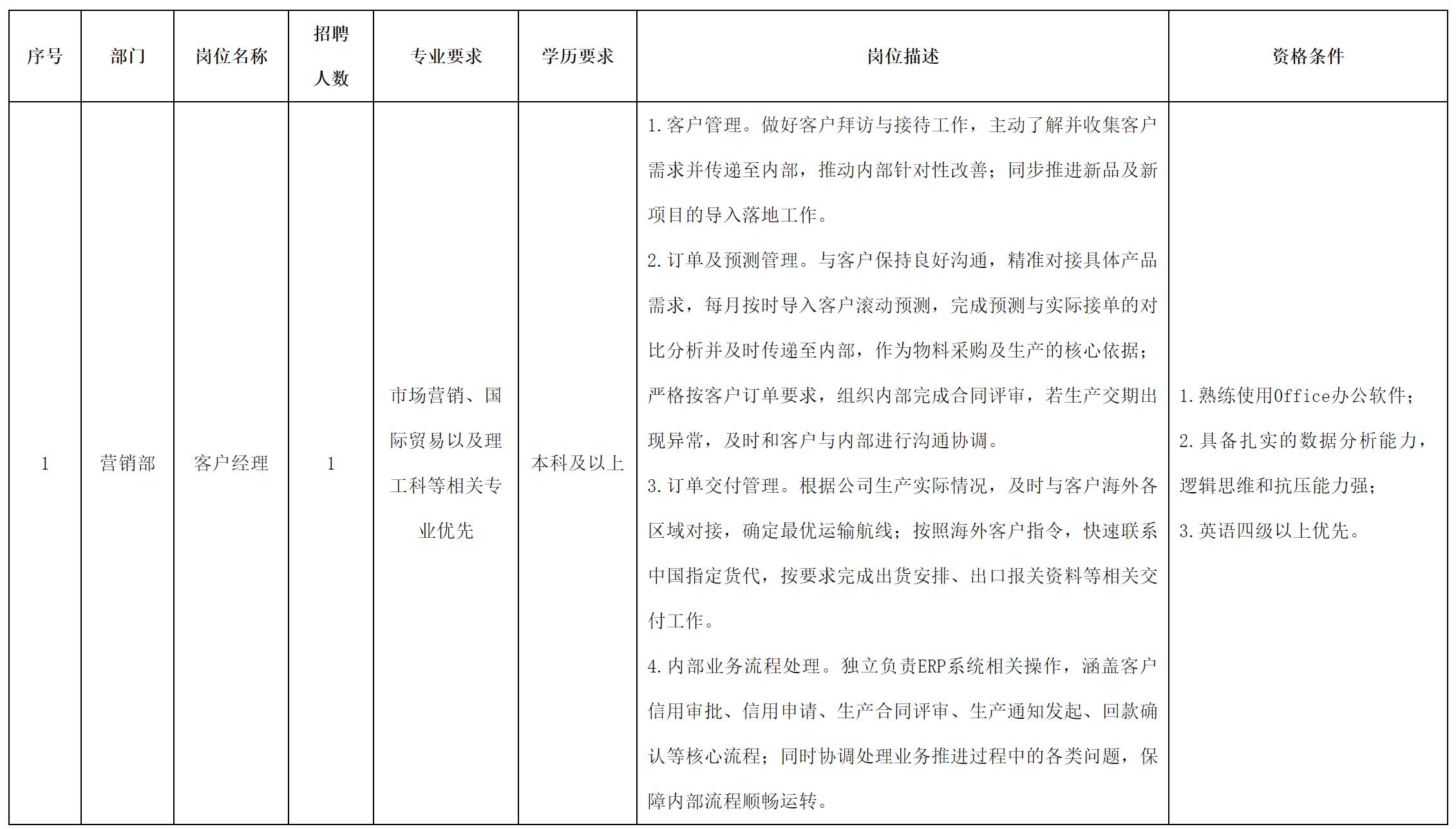 根據(jù)公司經(jīng)營(yíng)發(fā)展需要,現(xiàn)公開招聘客戶經(jīng)理1名: