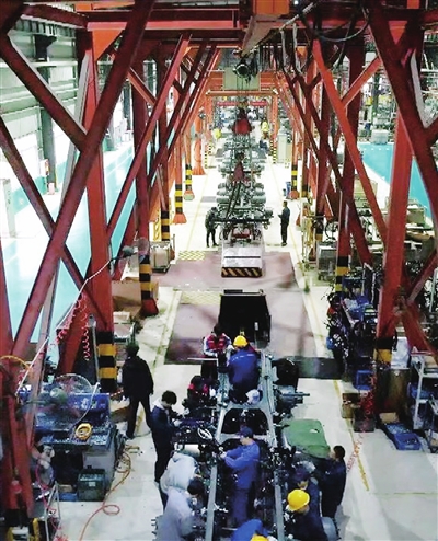 日前,在江油高新區(qū)的四川陸亨能源科技有限公司生產(chǎn)車間內(nèi),焊工正通過智能焊接機(jī)械臂對(duì)受熱面管束進(jìn)行拼接。 記者 陳元松 攝