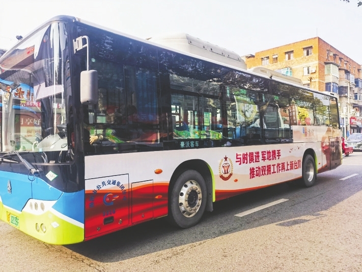 “雙擁主題公交”不僅是交通工具,更是流動(dòng)的“雙擁宣傳站”。車身兩側(cè)印有“同呼吸,共命運(yùn),心連心,軍民團(tuán)結(jié)一家親”“與時(shí)俱進(jìn),軍地?cái)y手,推動(dòng)雙擁工作再上新臺(tái)階”等宣傳標(biāo)語,車廂內(nèi)“軍人優(yōu)先”等標(biāo)識(shí)醒目,讓群眾在日常出行中感受愛國(guó)擁軍氛圍。