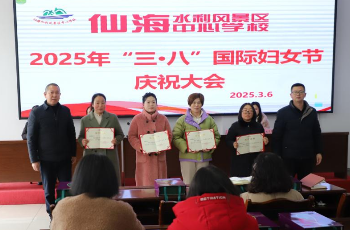 3 月 6 日中午,仙海區(qū)中心學(xué)校在初中部會(huì)議室召開(kāi)了慶祝大會(huì),校長(zhǎng)何軍主持會(huì)議。會(huì)上,該校對(duì) 2024 年度表現(xiàn)突出的 “三八紅旗手” 進(jìn)行了表彰,李豪書(shū)記發(fā)表了熱情洋溢的講話,他代表學(xué)校向全體女教職員工致以節(jié)日的問(wèn)候,高度贊揚(yáng)了她們?cè)诮虒W(xué)、管理、后勤等崗位上的辛勤付出與卓越貢獻(xiàn),鼓勵(lì)大家繼續(xù)發(fā)揮 “半邊天” 作用,以巾幗不讓須眉的豪情投身教育事業(yè)。會(huì)后,該校為每位女教師發(fā)放了節(jié)日慰問(wèn)品 —— 檀木梳子和精油一套,傳遞了濃濃的關(guān)懷與祝福。