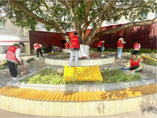得英大道旁,同學(xué)們手持工具,為校園主干道的花草“梳妝打扮”:修剪枯枝、清理雜草、松土澆水……協(xié)作間,花兒開得更艷、樹葉顯得更翠。綠化校園、守護(hù)校園的綠意是該校每個(gè)人的責(zé)任。