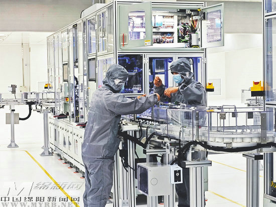 在綿陽(yáng)創(chuàng)明智能電池有限責(zé)任公司鋰電池生產(chǎn)車(chē)間,工人正在調(diào)試電池產(chǎn)線(xiàn)。