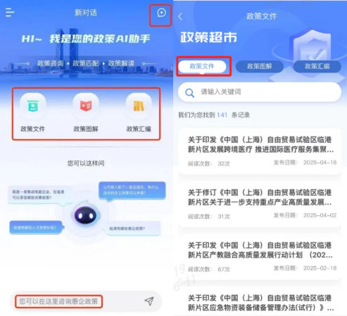 臨港新片區(qū)匯聚了海量創(chuàng)新型企業(yè),政策紅利是其發(fā)展的關(guān)鍵助推器。然而,面對(duì)各級(jí)各類惠企政策,傳統(tǒng)查詢方式往往效率低下、信息滯后。“政策AI”助手的誕生,滿足了企業(yè)用戶高效查詢政策、及時(shí)掌握政策動(dòng)態(tài)的迫切需求。通過(guò)精準(zhǔn)語(yǔ)義理解與多輪問(wèn)答能力,用戶無(wú)需使用刻板的關(guān)鍵詞,而是可以用自然語(yǔ)言(如“我是一家集成電路企業(yè),在臨港可以享受哪些優(yōu)惠政策?”)進(jìn)行提問(wèn);同時(shí),憑借政策關(guān)聯(lián)與智能匹配能力,通過(guò)智能識(shí)別并推薦關(guān)聯(lián)政策,可幫助用戶發(fā)現(xiàn)忽略的潛在支持點(diǎn),實(shí)現(xiàn)政策的“精準(zhǔn)滴灌”。