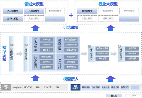“同舟”平臺(tái)自主研發(fā)三級(jí)模型適配體系,創(chuàng)新實(shí)現(xiàn)從通用大模型向行業(yè)專屬模型的精準(zhǔn)躍遷,支持企業(yè)基于私有數(shù)據(jù)進(jìn)行專業(yè)化、適配業(yè)務(wù)需求的專屬模型構(gòu)建,有效提升模型在特定業(yè)務(wù)場(chǎng)景下的推理準(zhǔn)確性與響應(yīng)效率。在多輪實(shí)測(cè)中,行業(yè)模型在知識(shí)命中率、上下文理解能力、任務(wù)執(zhí)行精度等關(guān)鍵指標(biāo)上,相較通用模型平均提升30%以上。
