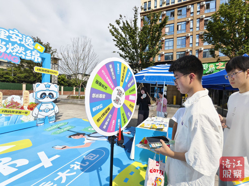 記者在現(xiàn)場(chǎng)看到,辦理完入學(xué)手續(xù)的新生們?cè)诖伺牌鹆碎L(zhǎng)隊(duì),他們手拿現(xiàn)場(chǎng)發(fā)放的活動(dòng)宣傳單、文旅消費(fèi)券以及鑰匙扣、書(shū)簽等文創(chuàng)產(chǎn)品,準(zhǔn)備進(jìn)行抽獎(jiǎng)環(huán)節(jié)。隨著一聲聲喝彩,來(lái)自西昌的現(xiàn)代技術(shù)學(xué)院新生海來(lái)點(diǎn)好,抽中了三江湖的游船票。他滿意地表示,運(yùn)氣好抽中了船票,周末可以約同學(xué)一起去坐游船欣賞涪江美景。