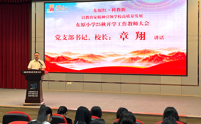 會(huì)議伊始,該校黨支部書記、校長章翔發(fā)表了熱情洋溢且意義深遠(yuǎn)的講話。他肯定了學(xué)校上一學(xué)年取得的輝煌成績,著重解讀了“東原紅 科教新”“教育家精神”“六個(gè)起來”文化內(nèi)涵,并傳達(dá)上級(jí)會(huì)議精神。