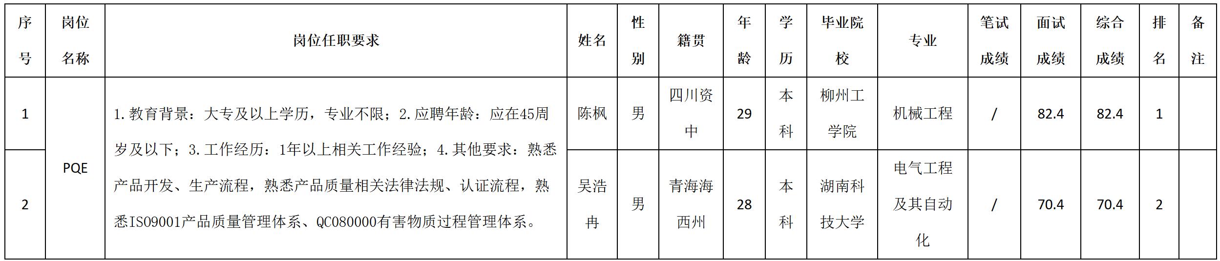 根據(jù)四川九州電子科技股份有限公司發(fā)布的招聘公告及招聘相關(guān)規(guī)定,經(jīng)筆試、面試等程序,現(xiàn)將筆試(面試)成績予以公示。