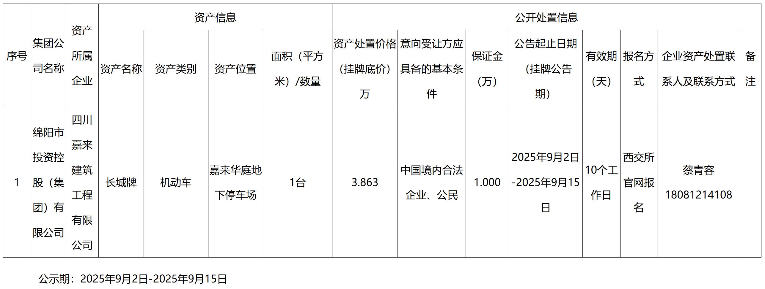 四川嘉來(lái)建筑工程有限公司企業(yè)資產(chǎn)處置公告