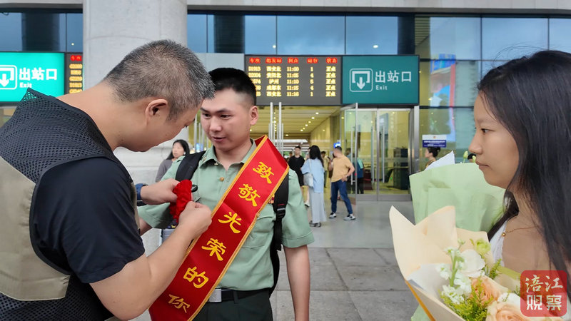 “我是來(lái)接我老公的,他是9點(diǎn)40分到站。”退役軍人家屬朱艷告訴記者,他愛人叫殷云強(qiáng),在新疆當(dāng)兵,已參軍12年了。