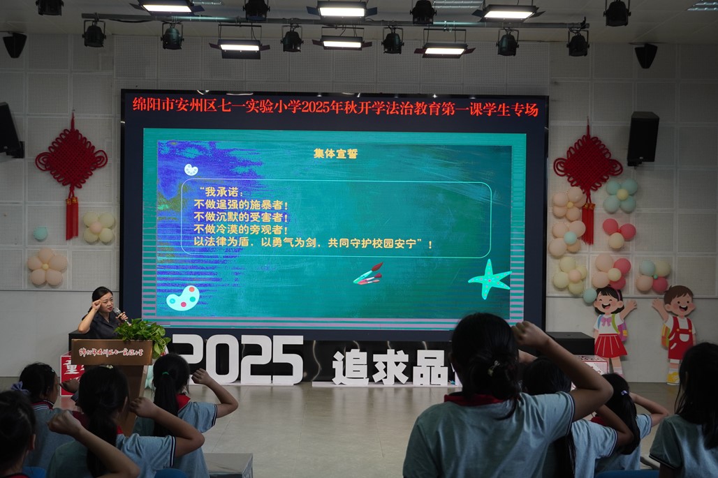 為了深入貫徹落實(shí)未成年人保護(hù)工作,增強(qiáng)學(xué)生法治意識,營造安全和諧的校園環(huán)境,9月2日,安州區(qū)“七一”實(shí)驗(yàn)小學(xué)聯(lián)合安州區(qū)法院在該校學(xué)術(shù)廳舉辦了以“守護(hù)少年的你——向校園欺凌說'不'”為主題的2025年秋法治教育活動。此次活動以創(chuàng)新形式將法治教育融入校園德育體系,為全校師生帶來了一堂生動的法治實(shí)踐課。