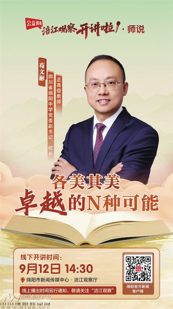 本周五(9月12日),由市委宣傳部指導(dǎo),市教體局、市文廣旅局、市衛(wèi)健委支持,市新聞傳媒中心主辦、市文化傳媒(集團(tuán))有限公司承辦的“涪江觀察開(kāi)講啦”公益講座第一季,即將重磅開(kāi)啟。