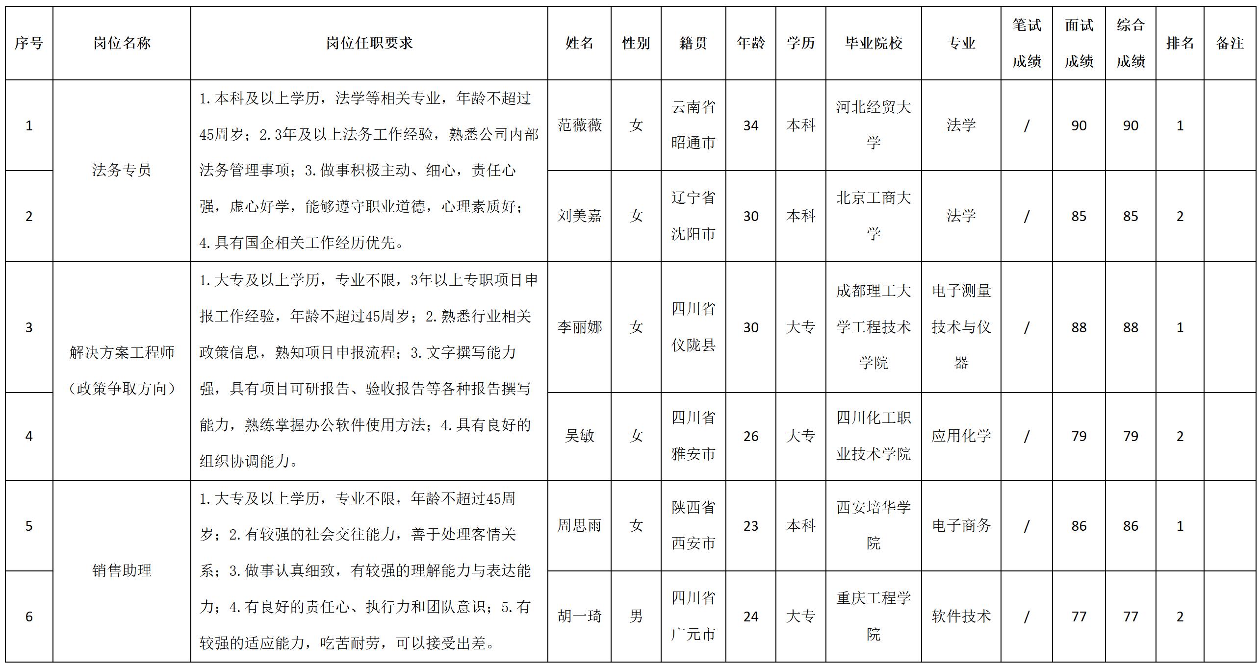 根據(jù)四川科瑞軟件有限責(zé)任公司發(fā)布的招聘公告及招聘相關(guān)規(guī)定,經(jīng)筆試、面試等程序,現(xiàn)將筆試(面試)成績(jī)予以公示。