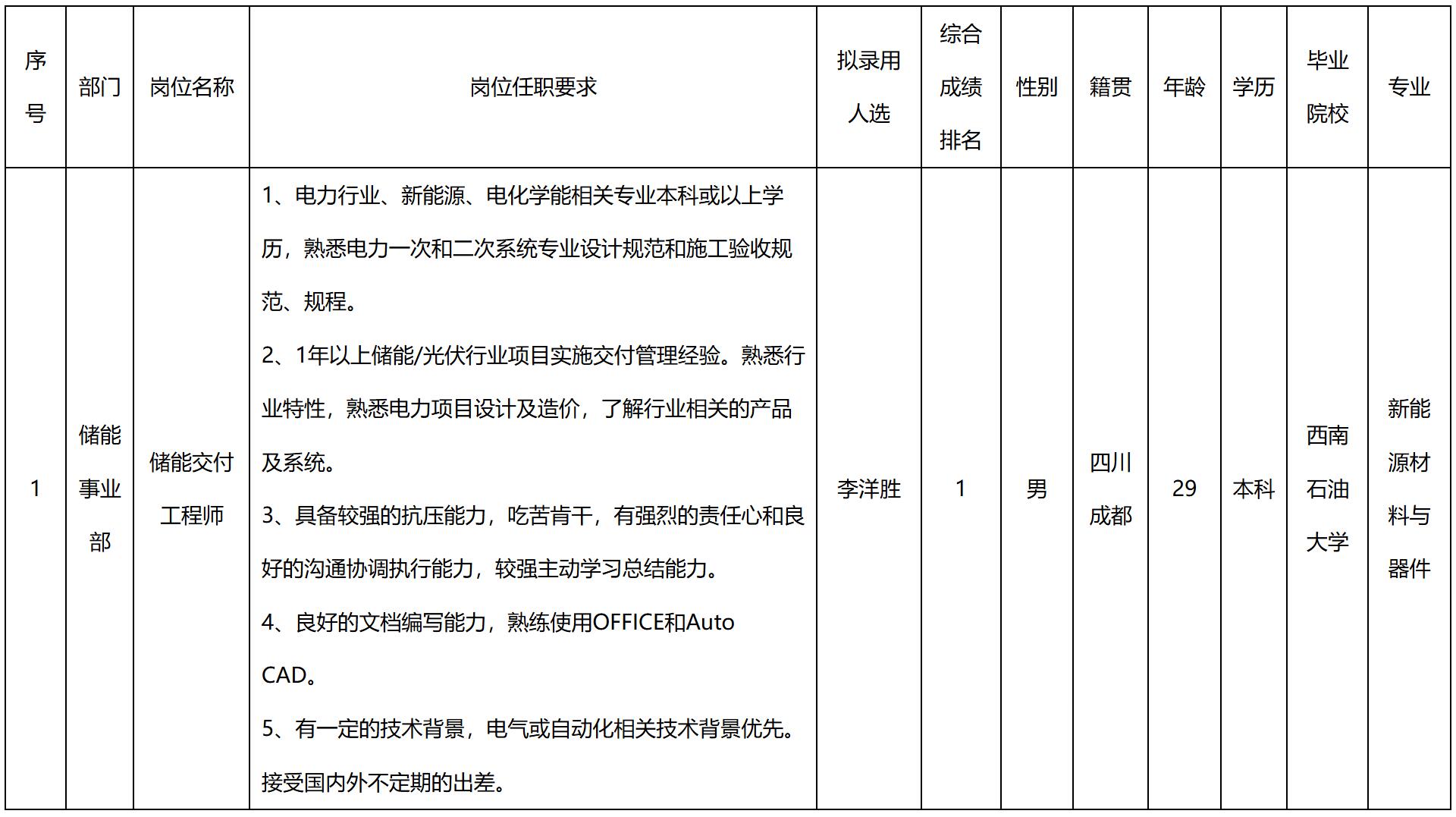 根據(jù)四川長虹電源股份有限公司發(fā)布的招聘公告及招聘相關(guān)規(guī)定,經(jīng)面試、考察、體檢等程序,擬錄用李洋勝同志到我司工作,現(xiàn)予以公示,具體情況如下: