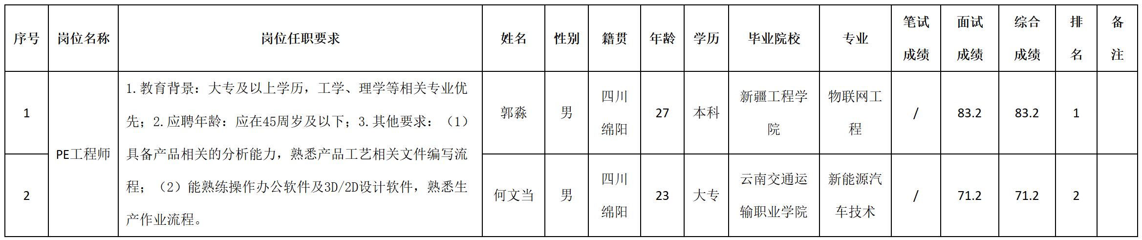 根據(jù)四川九州電子科技股份有限公司發(fā)布的招聘公告及招聘相關(guān)規(guī)定,經(jīng)筆試、面試等程序,現(xiàn)將筆試(面試)成績(jī)予以公示。