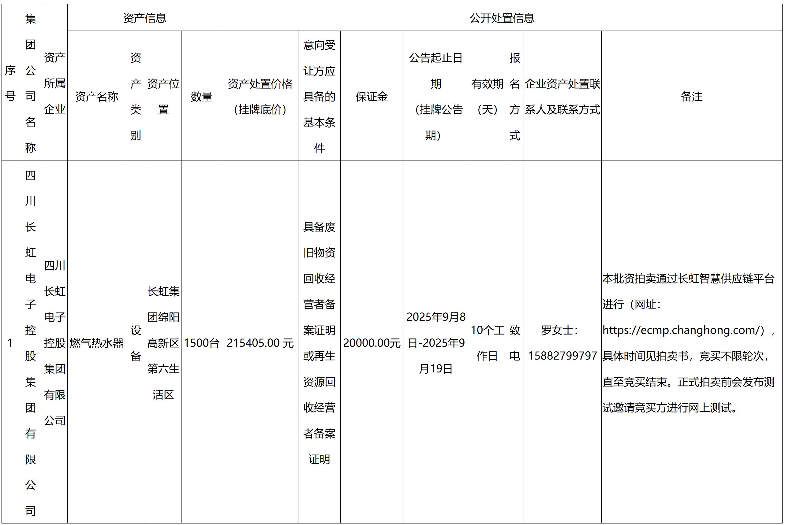四川長虹電子控股集團有限公司資產處置公告