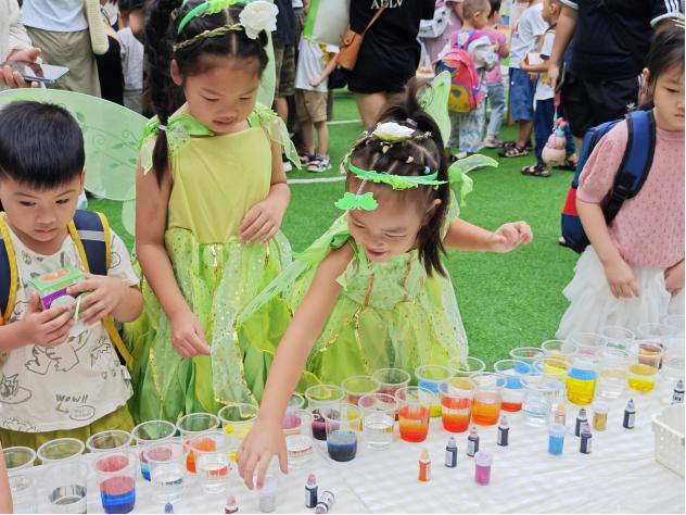 投“石”許愿、魔法冰花秀、魔法種子認領、魔法云朵棒、彩虹魔法藥水等等,小朋友們在游戲體驗和互動交流中收獲了滿滿的新學期祝福,歡聲笑語溢滿了云幼小院。
