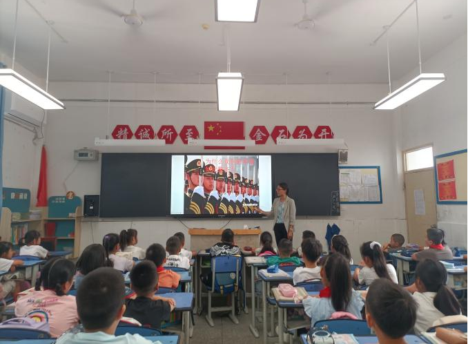 同學(xué)們整齊地坐在教室,通過多媒體設(shè)備認(rèn)真觀看閱兵儀式直播。當(dāng)一個個整齊劃一的方陣邁著鏗鏘有力的步伐走過天安門廣場,當(dāng)一架架先進(jìn)的戰(zhàn)機(jī)在天空中呼嘯而過,同學(xué)們深切感受到祖國的繁榮昌盛,臉上洋溢著自豪與激動,愛國情油然而生。